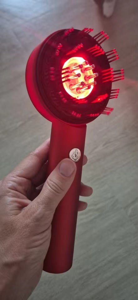 De combinatie van massage, rood, blauw en infrarood licht stimuleert de bloedcirculatie en activeert de haarzakjes. Dit bevordert de haargroei en versterkt verzwakte haren, waardoor haaruitval merkbaar vermindert.