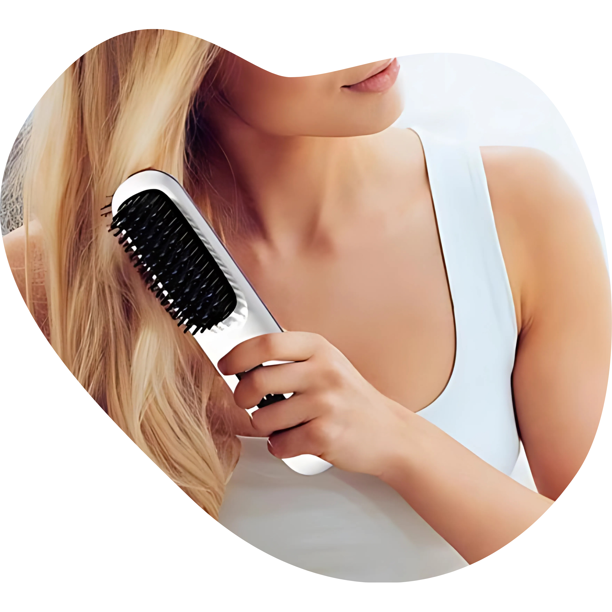 "Onze stylingkam temt effectief pluis, waardoor je haar glad, glanzend en fris aanvoelt."