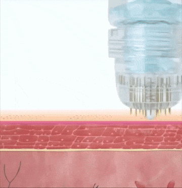 De ultra-fijne  gouden naaldjes creëren kleine microkanaaltjes in de hoofdhuid.